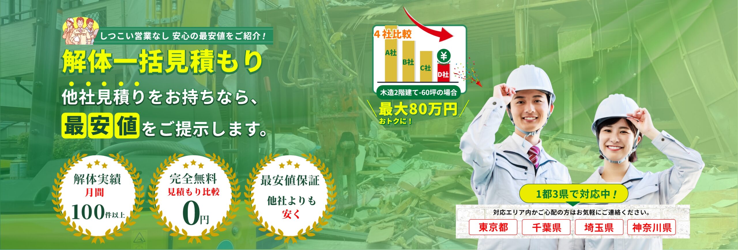 安心の最安値で解体工事を実現します!